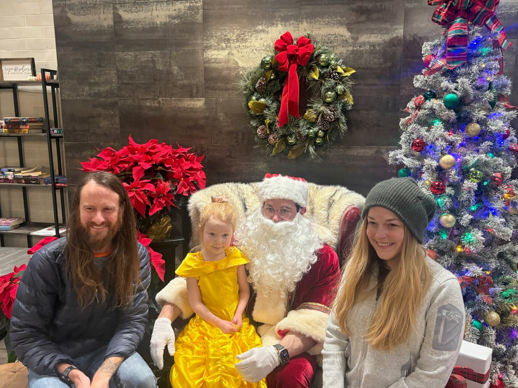 Before any of us got to Austin, Eric, Brit and Margot found themselves sitting on Santa’s lap in our neighborhood. Margot dressed up for the occasion.