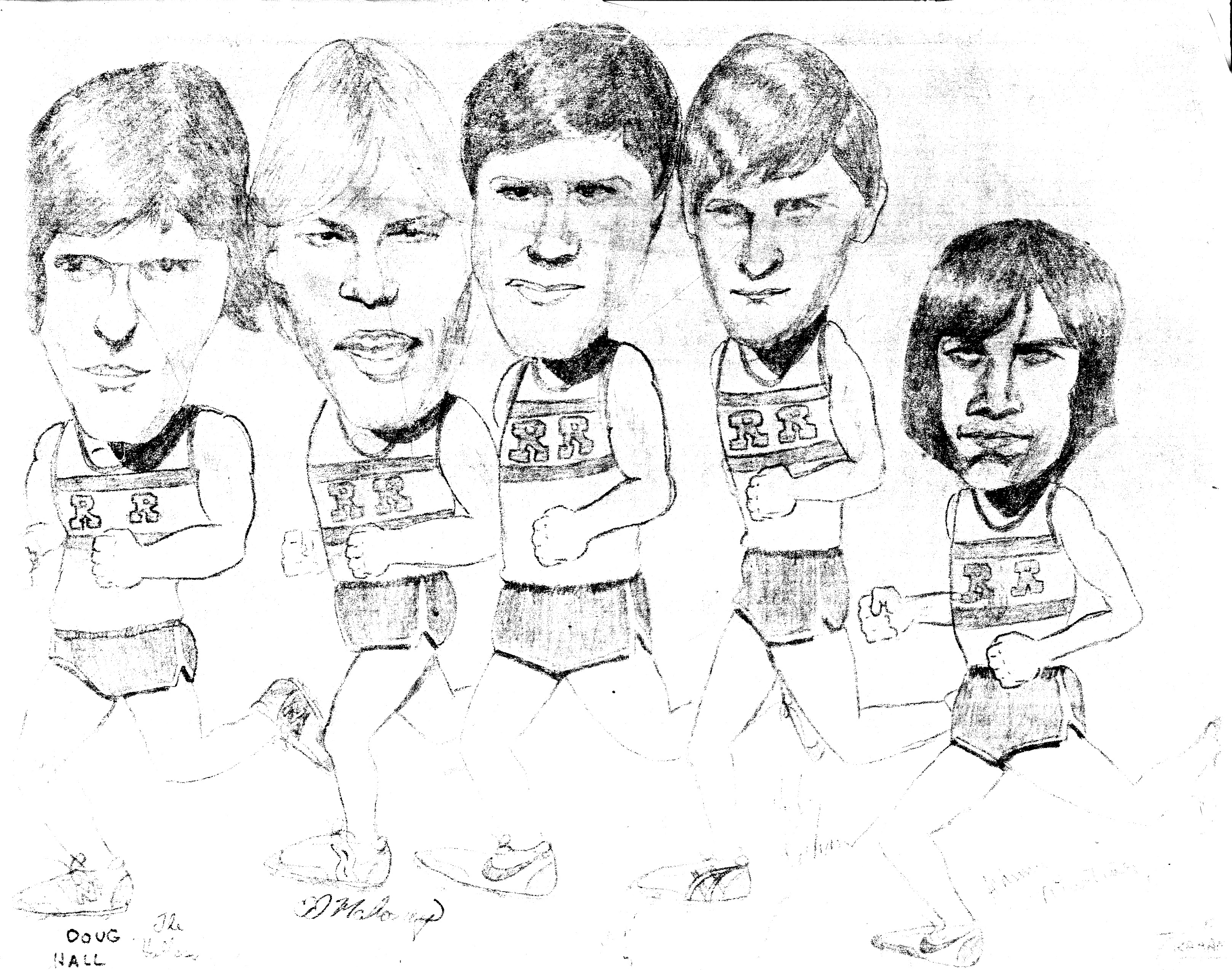 Look at those boys in Jeff Graham’s 1978 drawing of five fit athletes enjoying their time in the sun running cross country for Round Rock HS back in the day. From left to right, we are Doug Hall (RIP), me, Joe Cepeda, Robert Graham, and Johnny Martinez. The countdown to my Austin Marathon is less than 30 days and I can’t help but reminisce on my training runs of fun times running in my youth.
