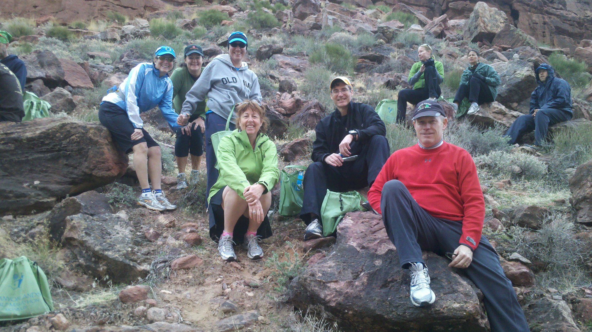 The best thing about the half in Moab wasn’t the spectacular scenery, it was spending the weekend with friends. What are the odds I could have so many friends fit enough to enjoy such a demanding sport with me? If this weren’t Boulder County, I’d say pretty low. In this pic is Eve, Suzy, Coach Jabe, Katherine, Keith and me.