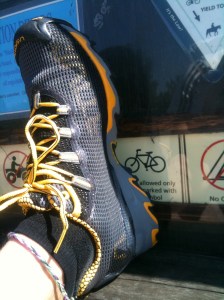 New trail shoes. My old ones died on the Colorado Trail. I liked them so much though I bought the same pair again. It was tempting to buy something different. Something with some color. But these La Sportivas have such good stability. And the Gore-Tex really works to keep my feet dry – very important. And for trail shoes, I don’t feel they are overly heavy. I broke them in Saturday with a 13 mile run on the East Boulder/White Rock Trail. I’m considering hanging the old ones on my office wall after I complete the CT in October. A self-awarded trophy of sorts. That’ll dress up the home office.