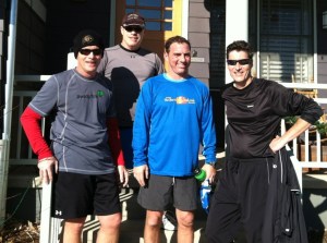 We ran a 6 mile out and back course along the Lobo Trail – starting and ending at Steve’s house. We all made smart gear choices. Nobody wore gloves although it was cold starting out. The sun was so bright that you just knew you would warm up once you got going, and we did. The conversation started out mostly about the previous night’s Old Fashion drinks. Turns out we can all hang with each others’ pace fairly well. Three of us will turn 50 next year. In fact, we’ve already booked a huge neighborhood trip to Mexico to celebrate the half dozen or so of us turning 50. Keith has set a goal to run his first marathon next year to mark his semi-centenary. After struggling to hang with him today, I’d say he could run a marathon now.