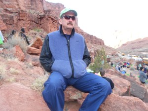 My first night of camping in 2012 went fairly well. It didn’t rain and the wind didn’t start up until late morning. I woke up refreshed, despite the previous day’s countless beers. Rob and I drove into Moab well before the 8am cutoff time when they would close Hwy 128 for the run. It was barely after 6am when we walked into the Red Rock Bakery and Net Cafe. And net cafe is an apt name – their wifi is screamin’ fast. We had coffee of course, a cinnamon roll and banana. We hung out longer than necessary to eat since we were fairly early. The buses wouldn’t load up until 7:30. And the bakery bathroom was going to be as good as it gets for some time. I took the opportunity to catch up on IBM email since I’d taken Friday off.
