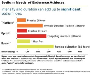 Unlike the Denver Marathon, the Boulder Marathon next month will be stocked at every aid station with Gatorade Endurance Formula. Gatorade’s website has this chart showing how much sodium to expect to lose during the run.