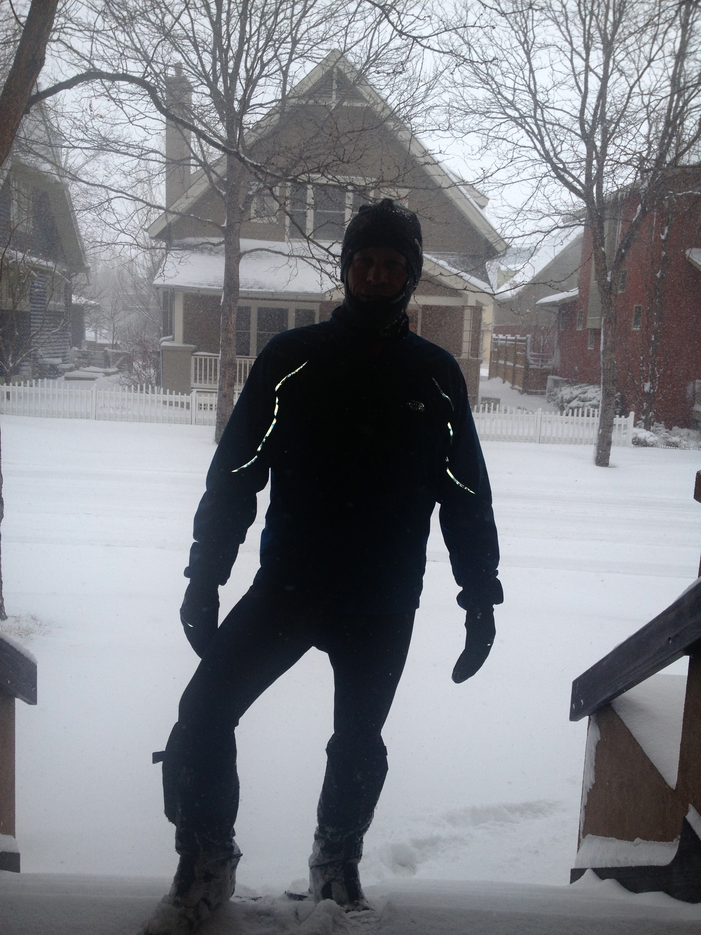 If you live around here, you’re very likely sitting beside the fire today. It’s below freezing with 20 mile an hour winds. And snow. Lots of it. I woke up early this morning and stared out the window at the sideways blowing snow for a couple hours drinking my coffee. I missed running on Saturday to recover from Friday night’s poker game. I couldn’t miss today too. After my third cup, it came to me. This was my chance to wear the balaclava I got for Christmas.