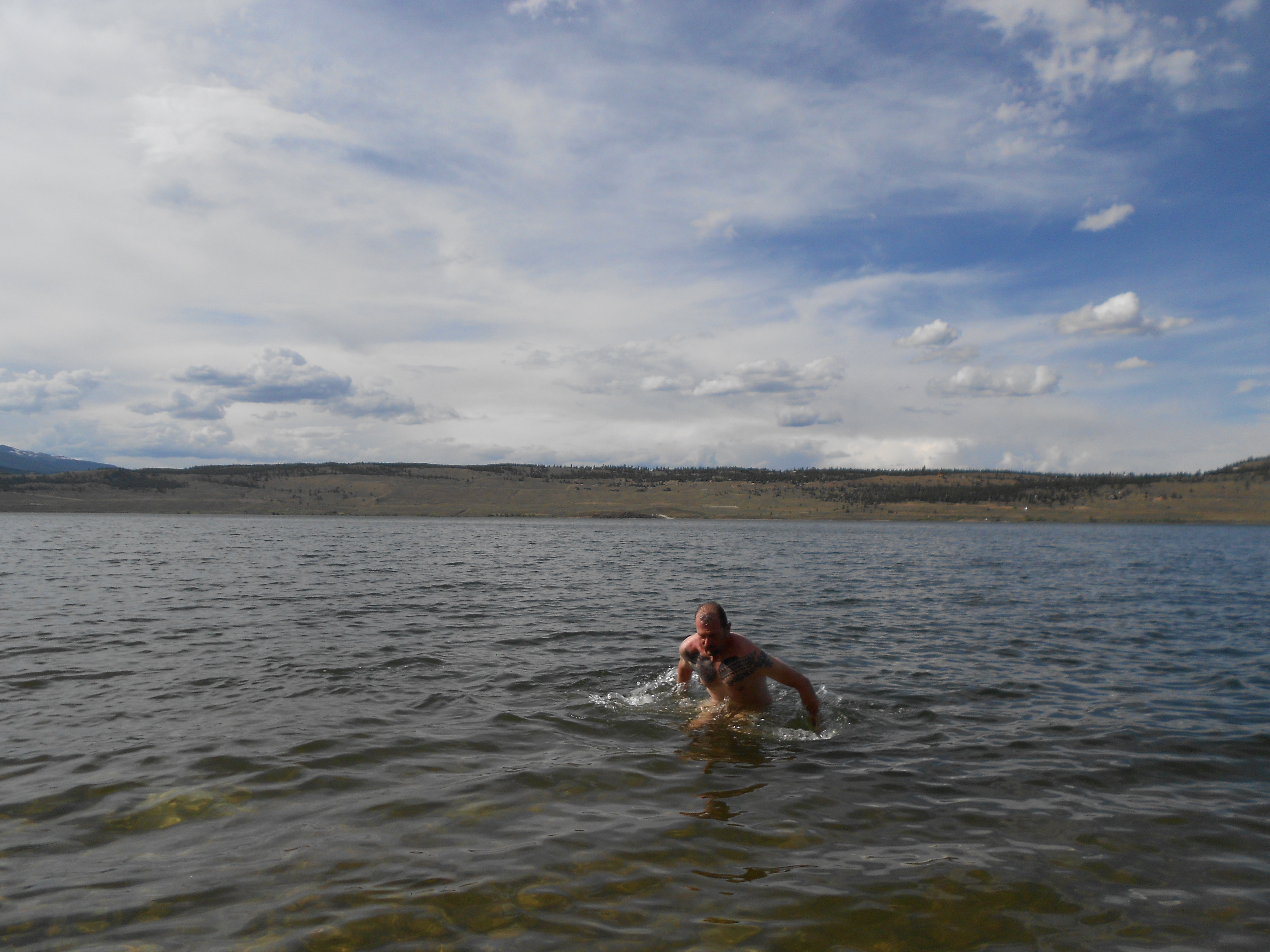 Even La Plata, the trail master, is exhausted. He revives himself by skinny dipping in the Twin Lakes. Likely as unauthorized as our water rustling earlier in the day. Mike and I soak our feet. We’re true trail trash by now. About the only thing we haven’t done is frequent respectable dining establishments with three days of sweat and trail dirt in our clothes and hair. We do that next.
