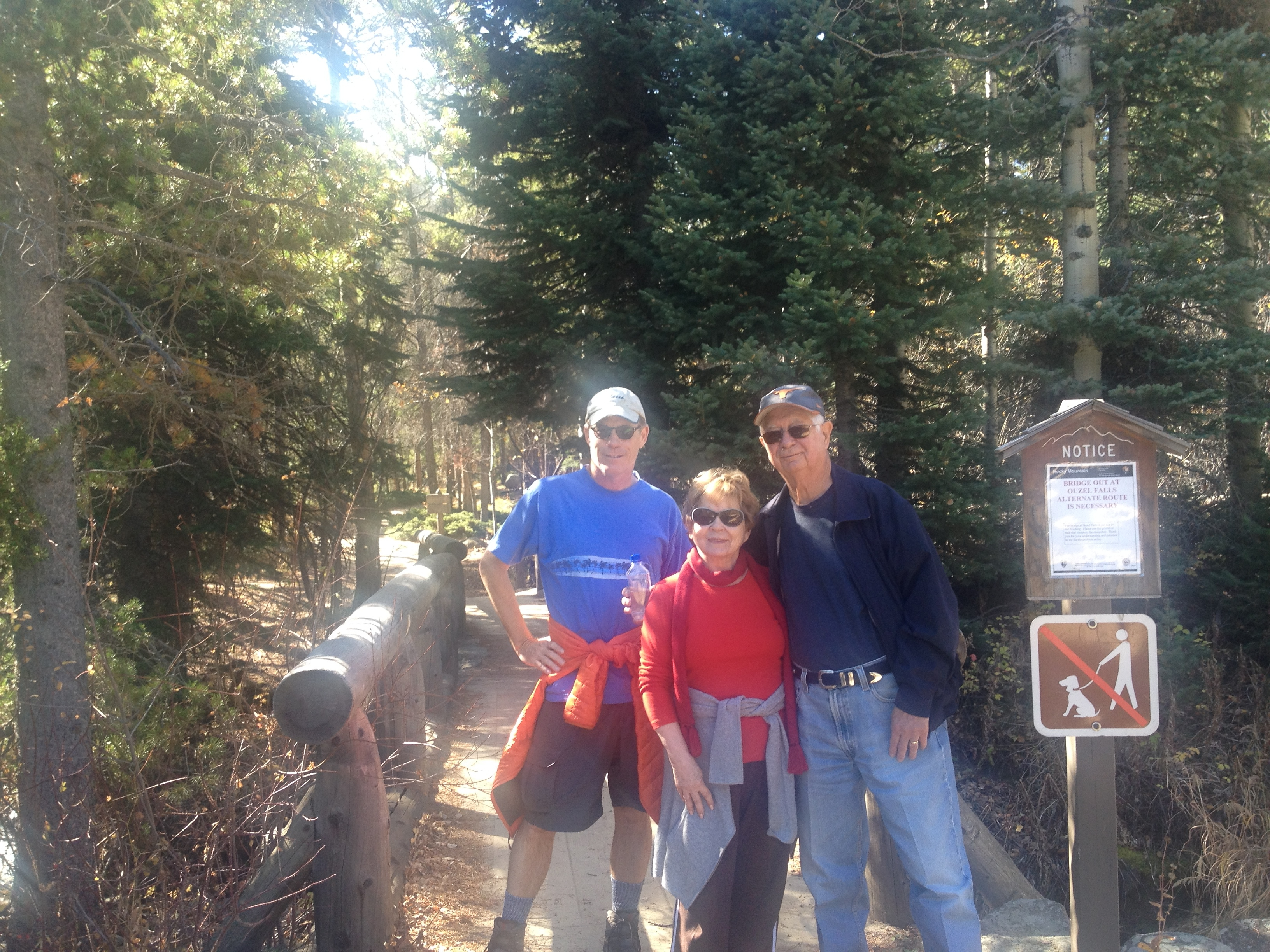 My marathon eve workout today consisted of hiking with my in-laws in the Wild Basin area of Rocky Mountain National Park. We hiked along the Ouzel Falls Trail, which Karen and I first explored back in July. The weather was ideal – crisp air and full sun. The Aspen leaves have all fallen at 8500 feet, but the scenery was still stunning.
