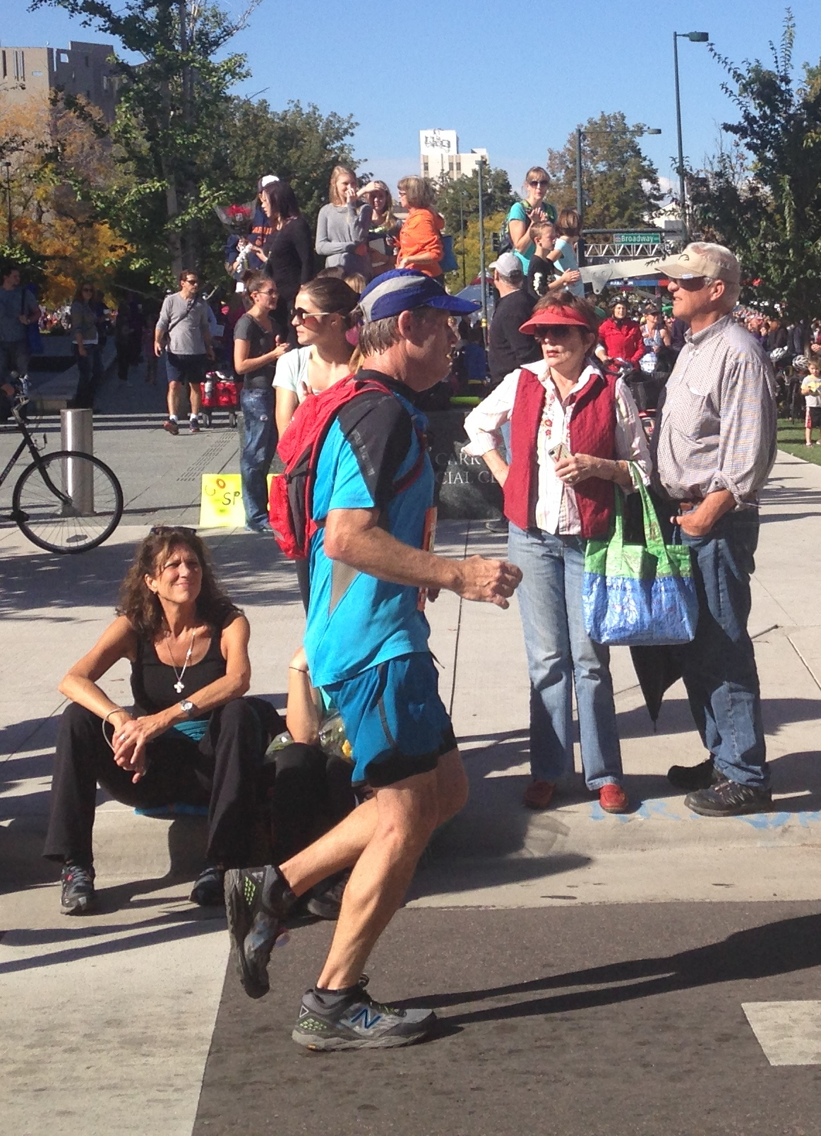 This year’s course has some key changes. We still run down 14th Street, past the Pepsi Center. Instead of crossing Speer, we turn west on it and run up and around Sloan Lake. The lake neighborhood is pretty once we reach it. This is a much hillier course. This doesn’t bother me since it’s early in the run. I pace with Chris the first two miles as he starts out with controlled 9 minute miles before accelerating to a 7:30 pace. My Garmin records 8:58 the first mile, and 8:32 for mile two. This is the last I see of Chris for awhile as he quickly surges away on an uphill segment. The road conditions are a bit disappointing with significant construction debris. I later meet a woman who fell and was injured from this.