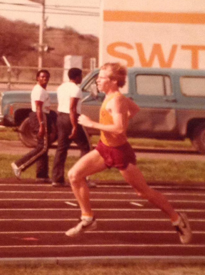I can’t remember the last time I ran on a track. Maybe a time around this photo in the early ’80s. I ran on the Niwot High School track today. In between rain showers. I ran 4×400 meter intervals. I would tell you I’m working on my speed for the Bolder Boulder, but I suspect I’ve lost focus and am now working on my speed to stay competitive on the Shoes & Brews 800 meter beer board.