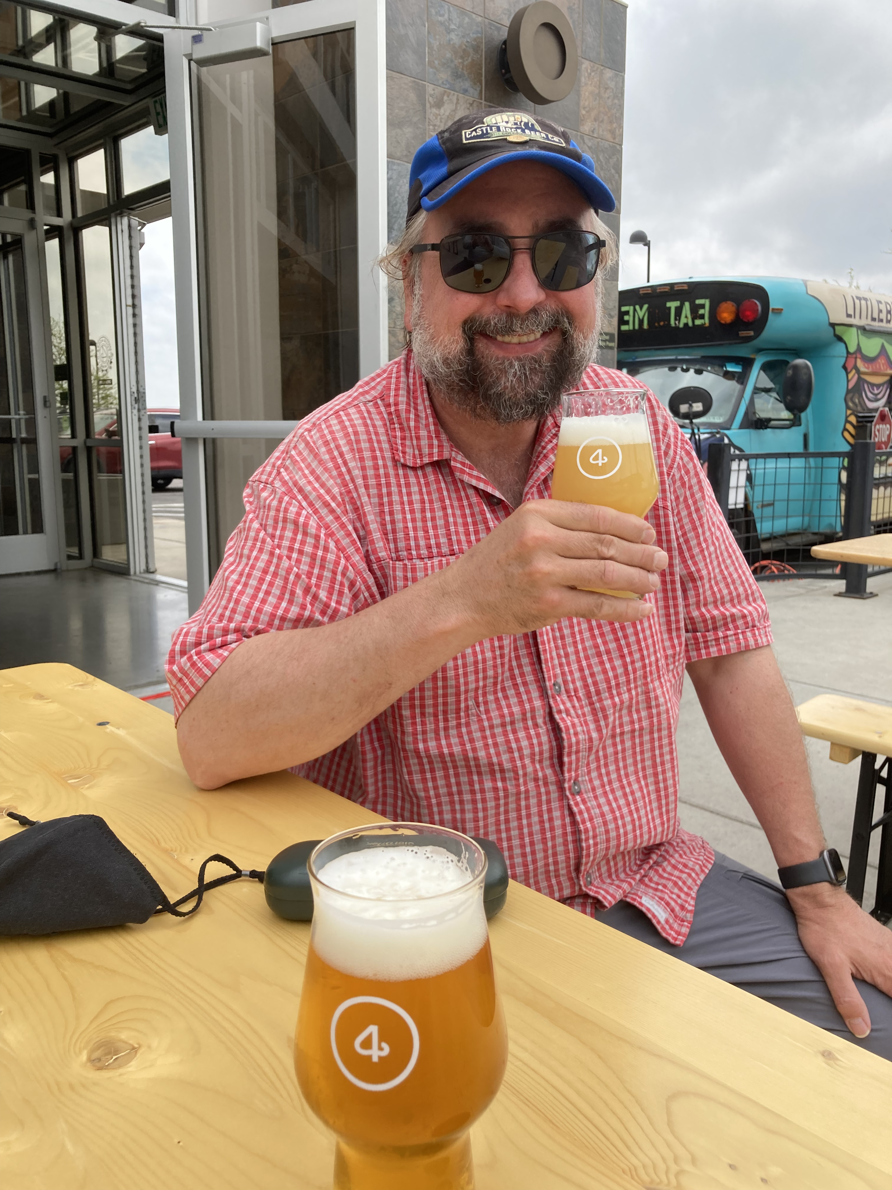 The 4 Nose Brewing Company just happened to be along our route on the drive home, so we stopped in for a tasty beverage and to replace calories lost on the trail. The irony of hiking past a woman walking four dogs on the trail was not lost on us.