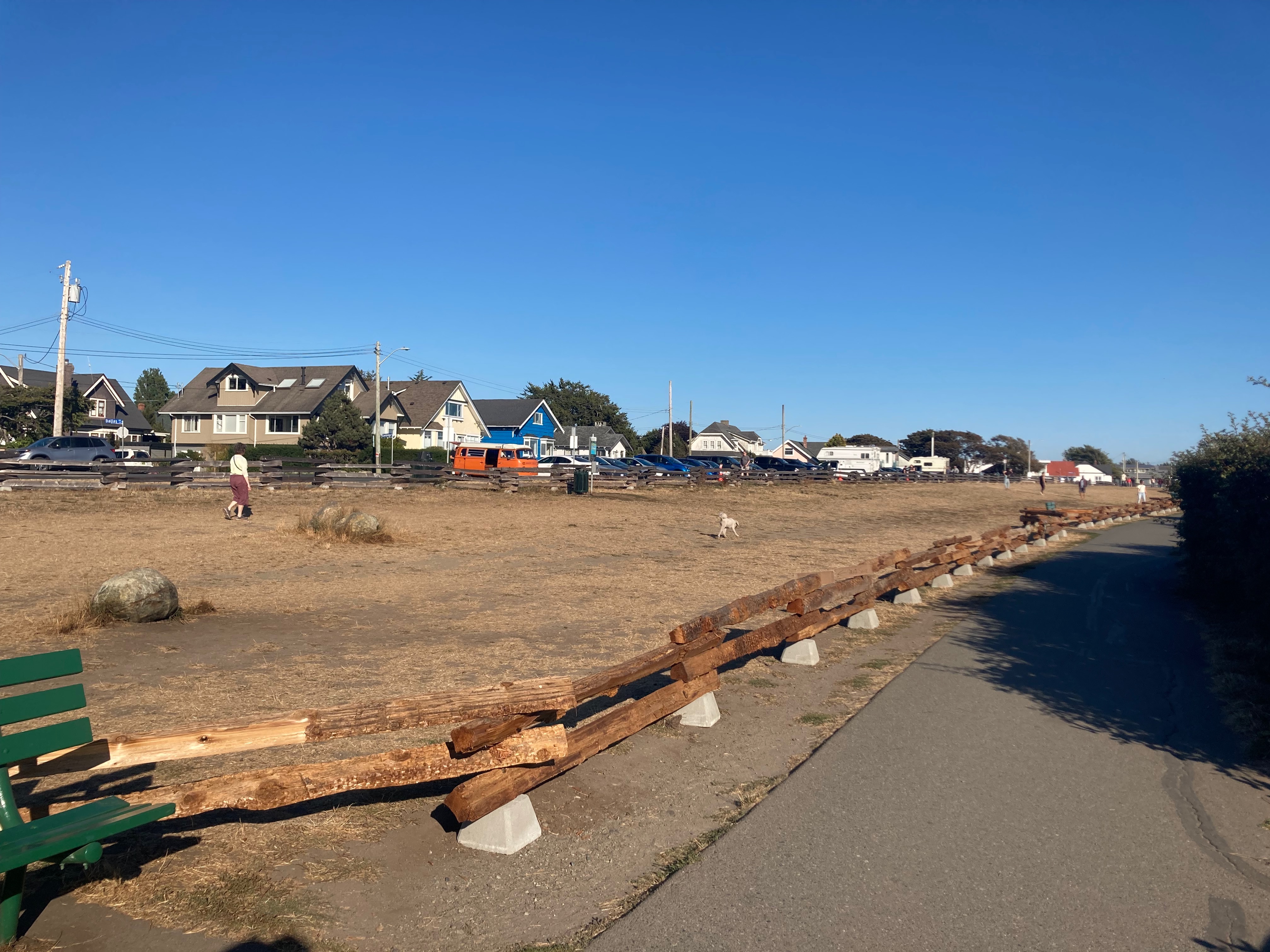 The Dallas Road Waterfront trail is asphalt, not as bad as cement, and it is an urban trail after all. What I found more amazing than the view was the dog park that ran alongside it for a good mile.