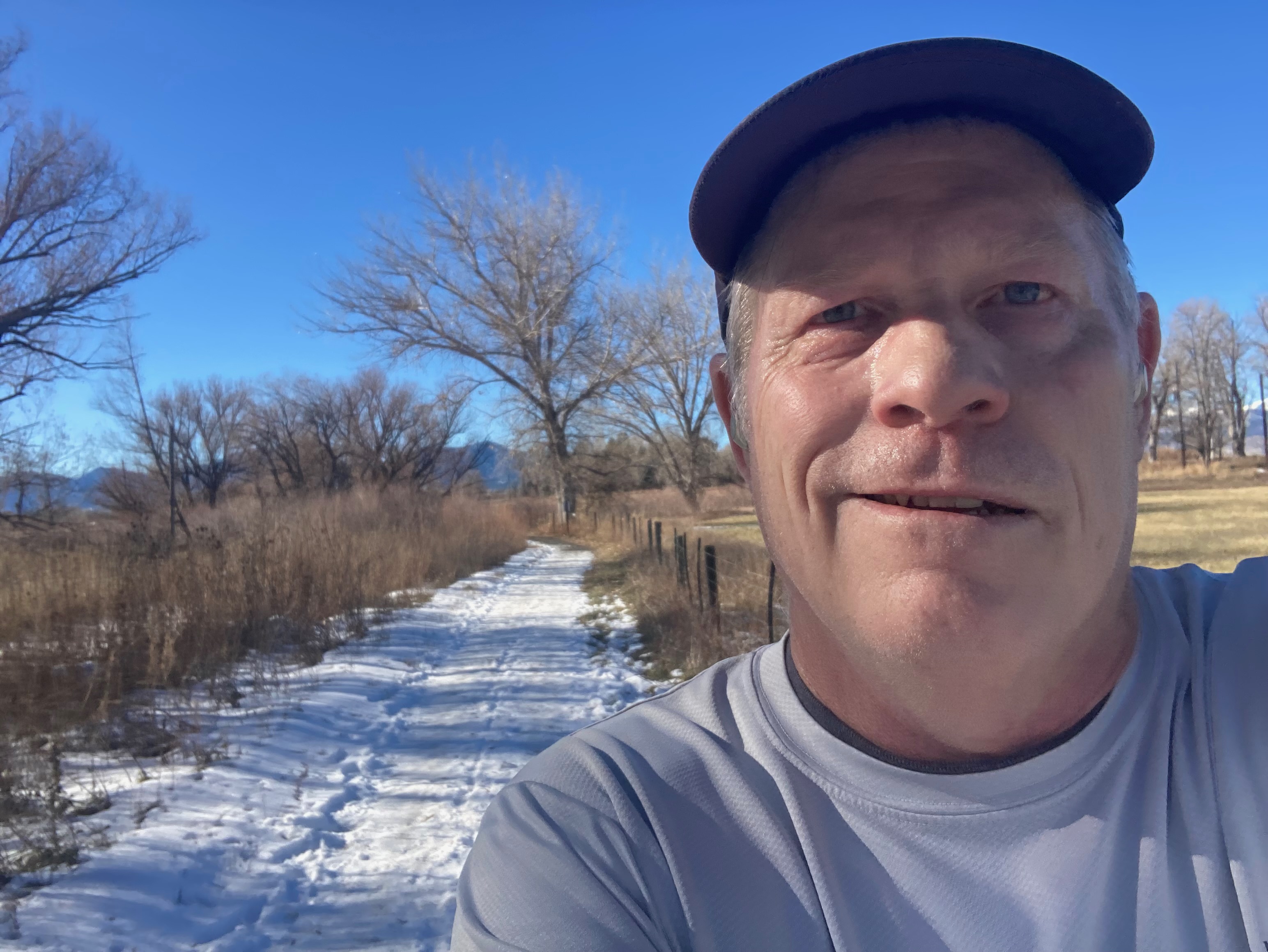 The danger in running the East Boulder Trail is the full sun exposure. In the cold air that welcomes winter, the full sun exposure is nature’s gift that supports running in shorts and a long-sleeved t-shirt.
