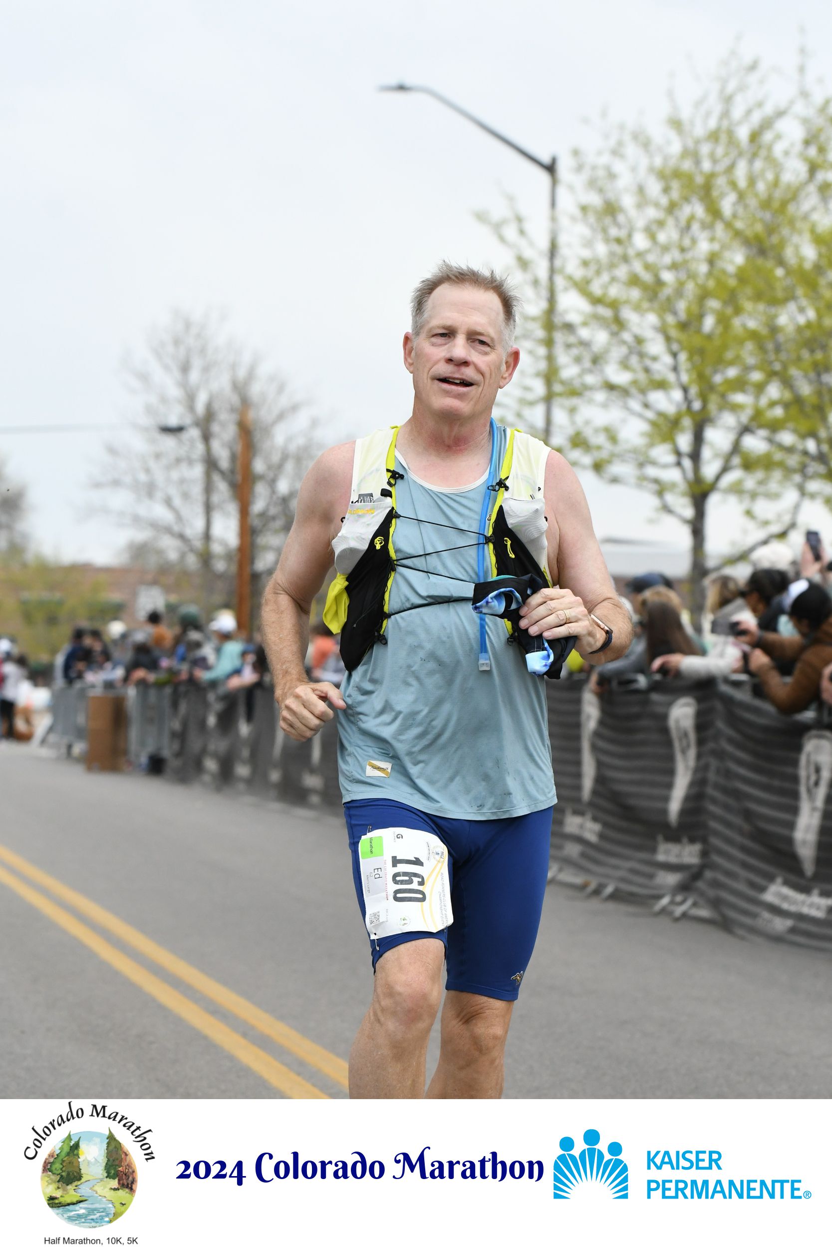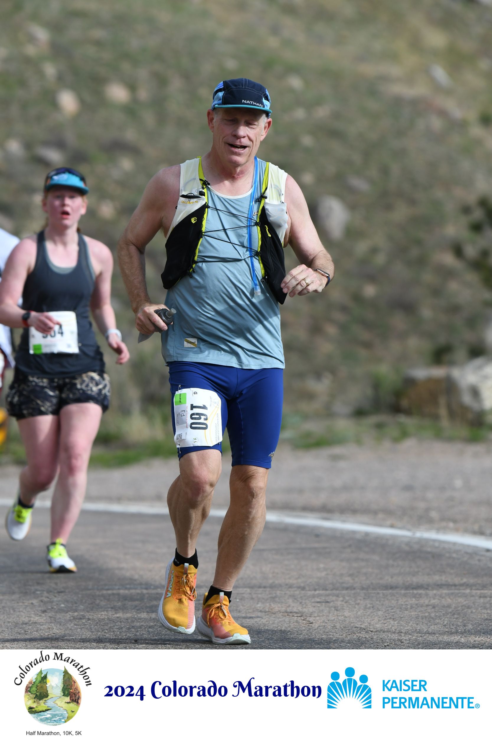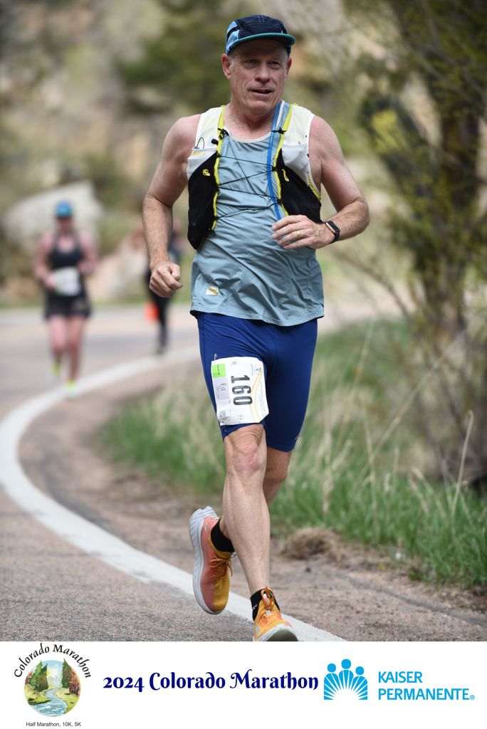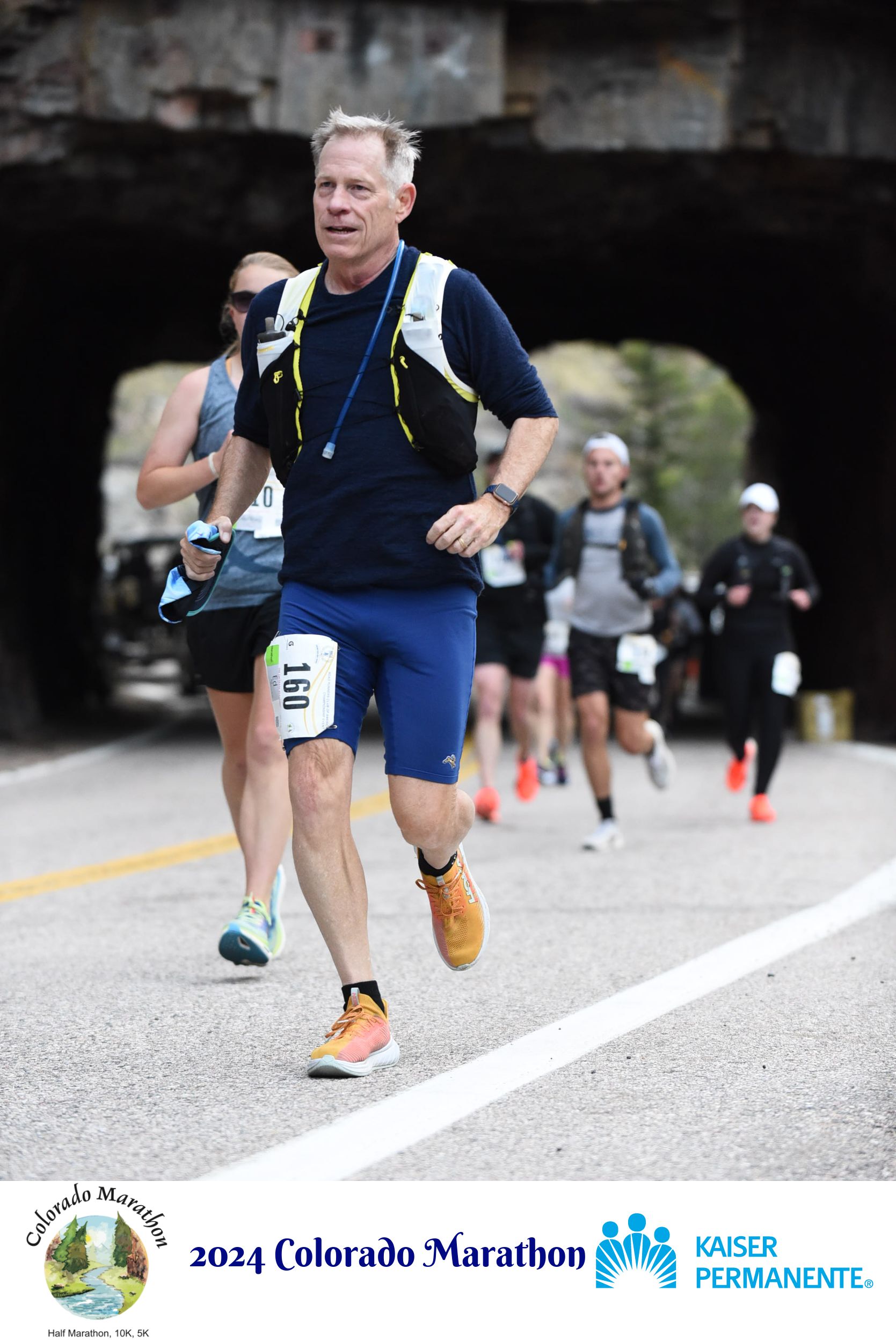 The pic above is of me emerging from the tunnel around the first two miles or so of the Colorado Marathon. Only 24 miles to go. I felt great at a 9 minute pace. I didn’t know it was a 9 minute pace, I had my watch set to monitor my heart rate. I didn’t know my pace until completely afterward. It felt fast.