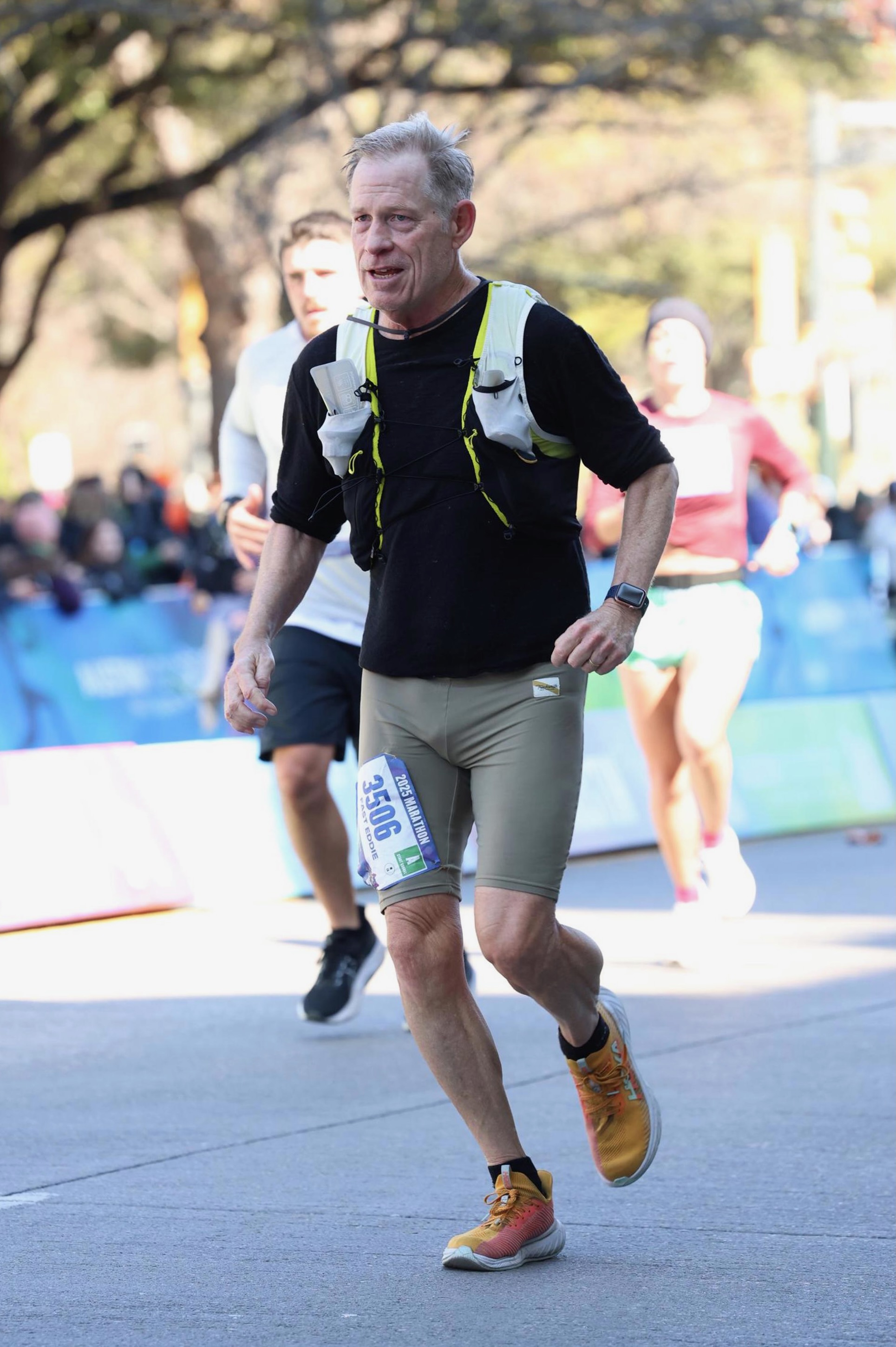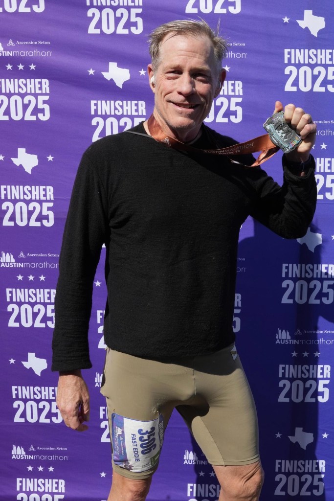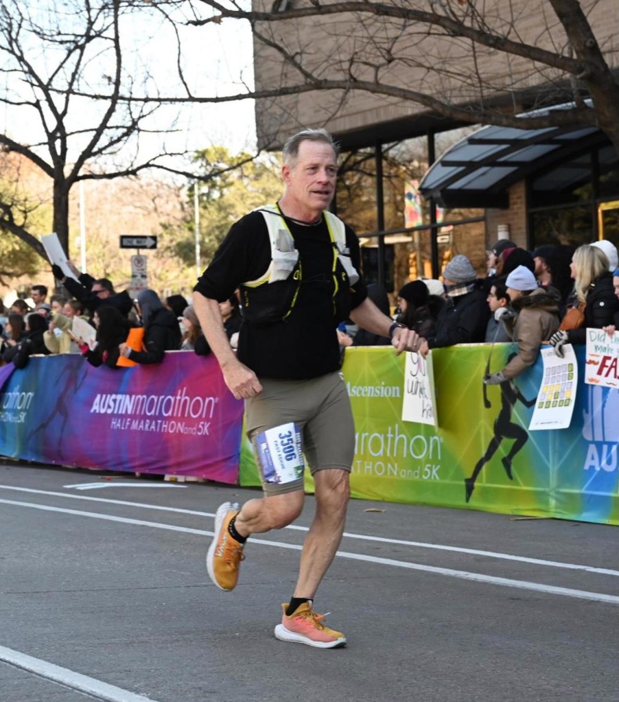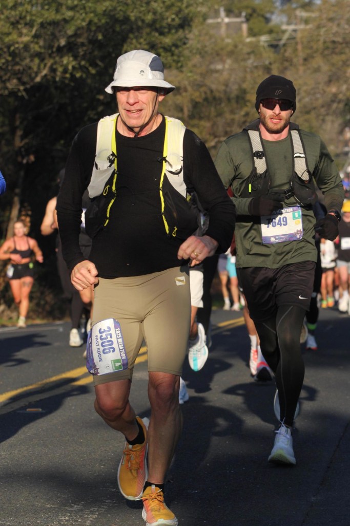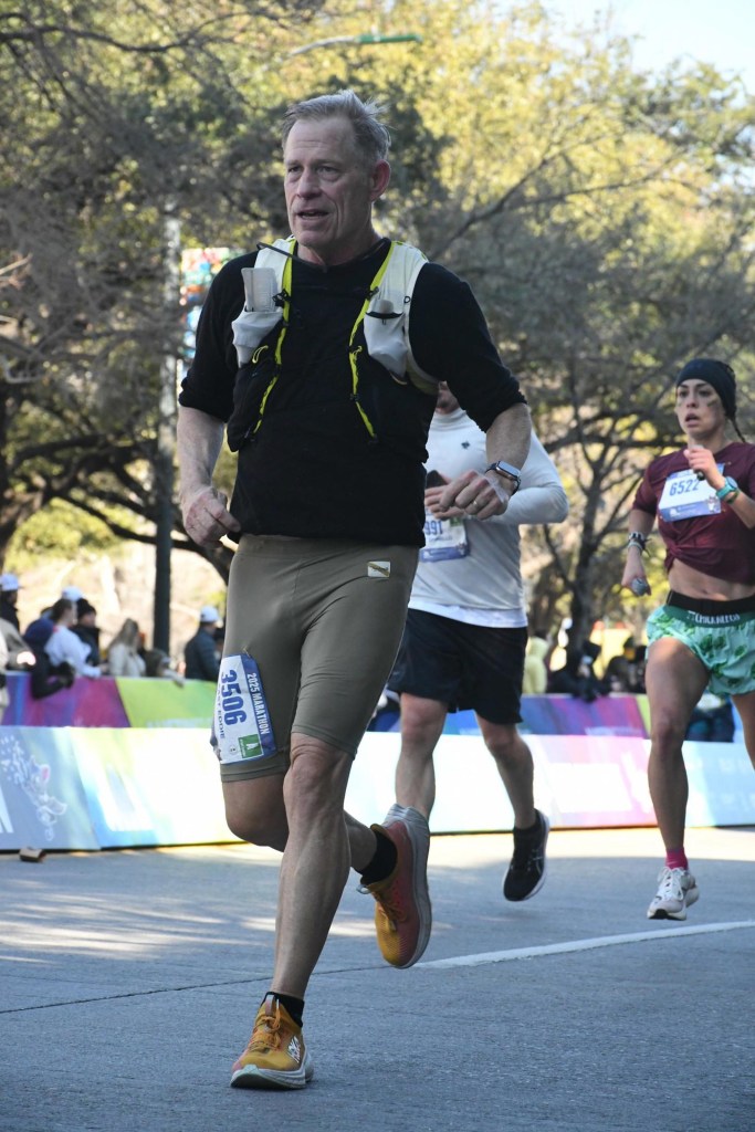 This was my 4th Austin Marathon. I ran my first in 2011, which was also my slowest at 4:23. This was the coldest though, by a mile. I saw a woman run the entire distance wearing a puff jacket. I found the weather to be ideal. Many runners wore tank tops – I had mine in my vest and nearly put it on in the final miles but I didn’t want to slow down for the maneuver. I was in race mode. I did wear gloves the first 10 miles.