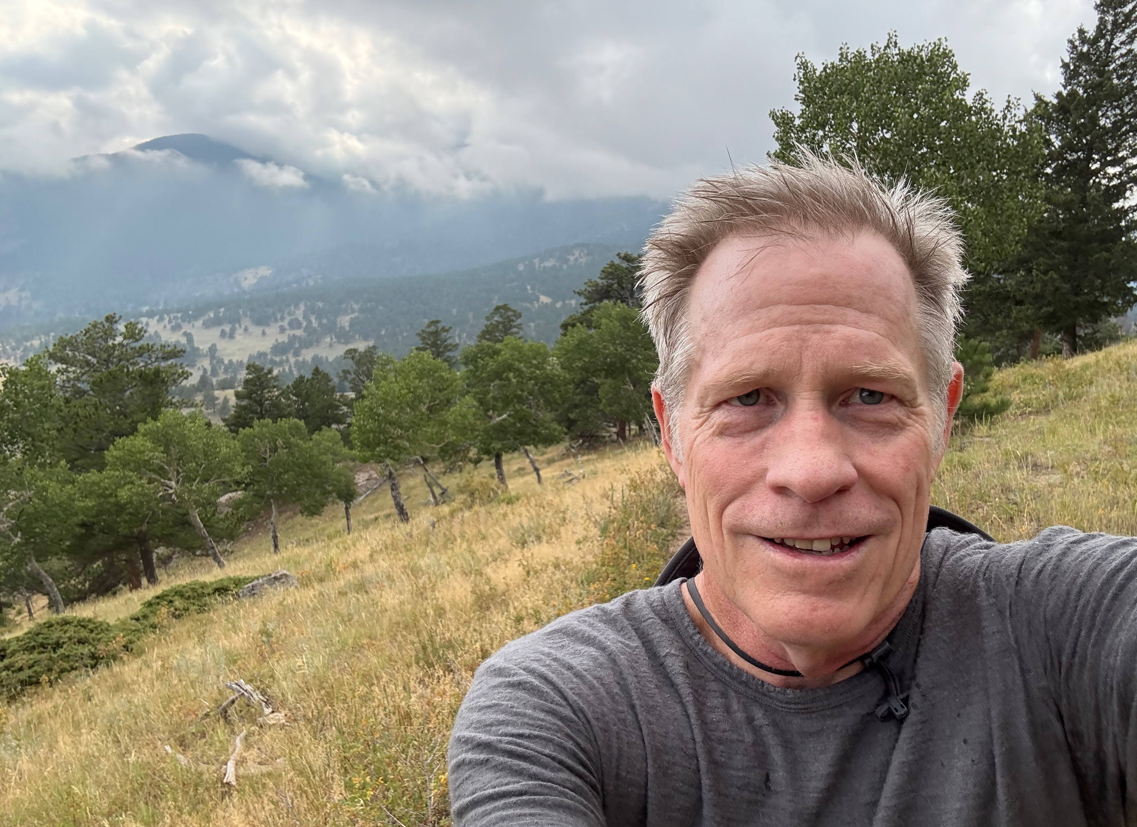 Karen said let’s spend the weekend in a cabin on Fall River Road. By weekend, she meant Thursday night through Saturday. I worked on the deck Friday, over the noise of a strong running stream, Fall River which runs through Fall River Valley and empties into the Big Thompson River in Estes Park, like any other Friday.