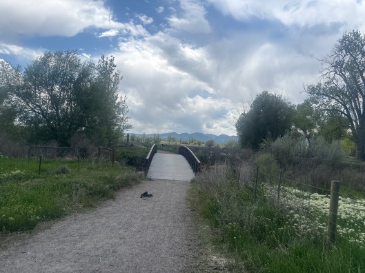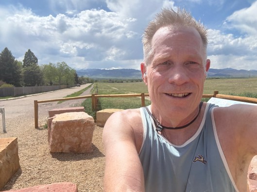 I’ll be a little scared toeing up to the starting line, knowing I’m not conditioned for this, but it’ll be an interesting attempt. I bet I can finish if I run slow enough. I’d still like to run under 5 hours, because I’ve never run a marathon over 5 hours before. My slowest is 4:35. I’d be happy if I run close to that time. Too little, too late, but I am having a good weekend training. The pic above is on the East Boulder Trail. Wish me luck.
