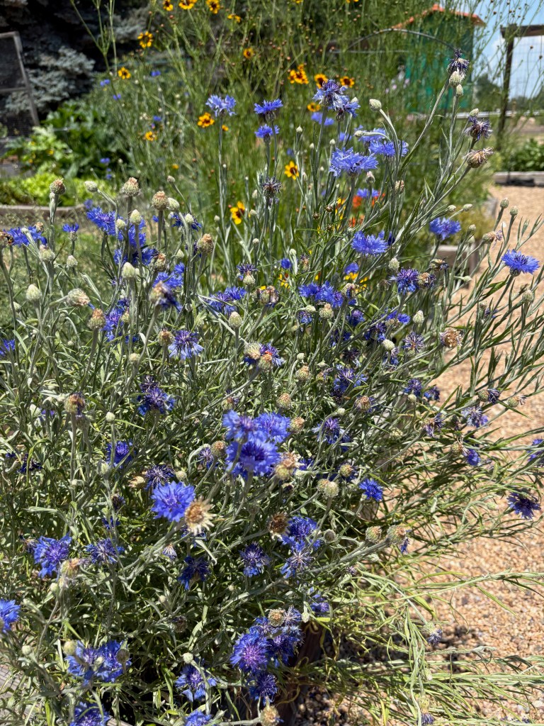 Closer to home, the neighbors mix flowers next to their vegetables in the community garden to attract pollinators.