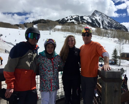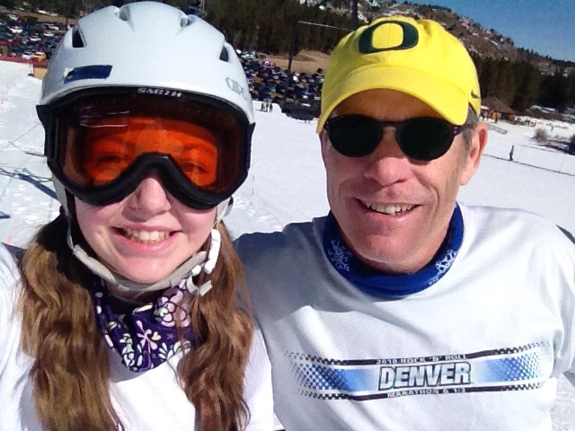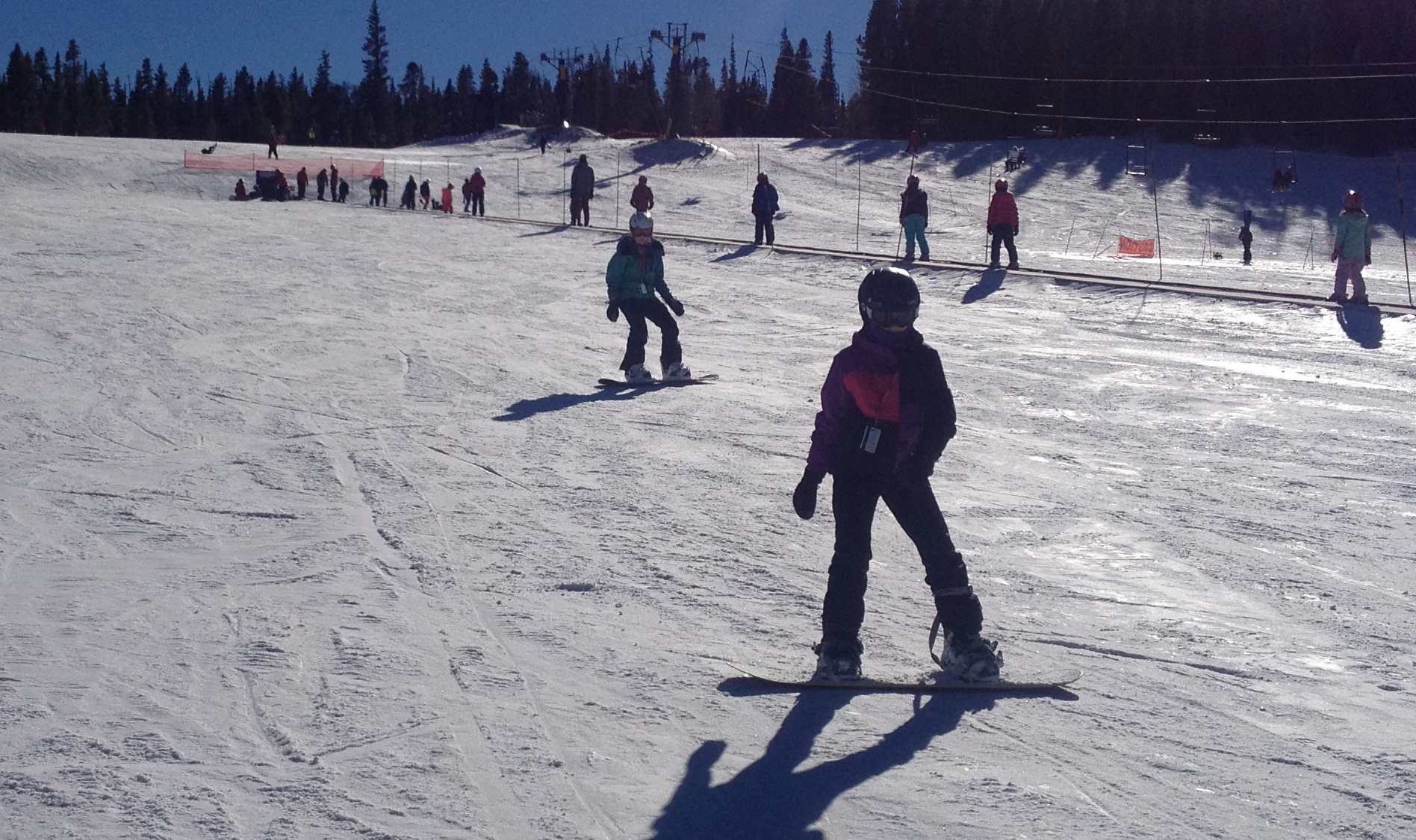 This weekend isn’t over yet. I snowboarded today up at Eldora with Ellie and Julia. We endured heavy falling snow for most of the day. Sticky powder. I might have to wax my board. Julia’s ski came off here going through the tunnel. She borrowed her mom’s skis and might need her own. Hint, hint.