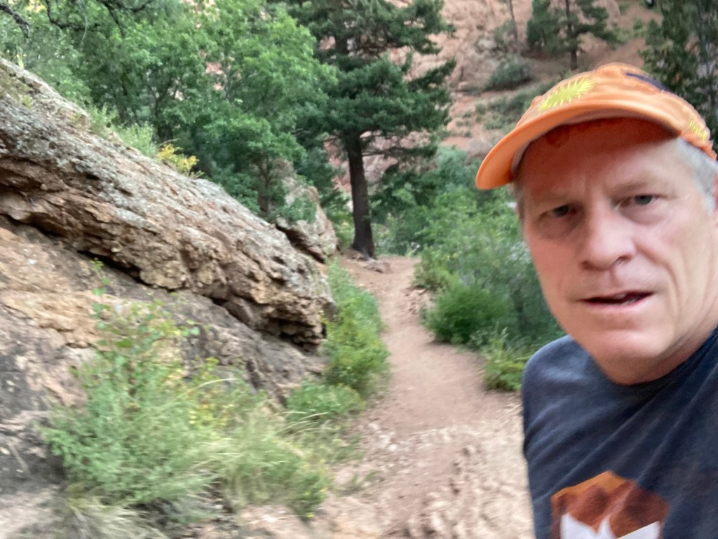 I’ll be a little scared toeing up to the starting line, knowing I’m not conditioned for this, but it’ll be an interesting attempt. I bet I can finish if I run slow enough. I’d still like to run under 5 hours, because I’ve never run a marathon over 5 hours before. My slowest is 4:35. I’d be happy if I run close to that time. Too little, too late, but I am having a good weekend training. The pic above is on the East Boulder Trail. Wish me luck.