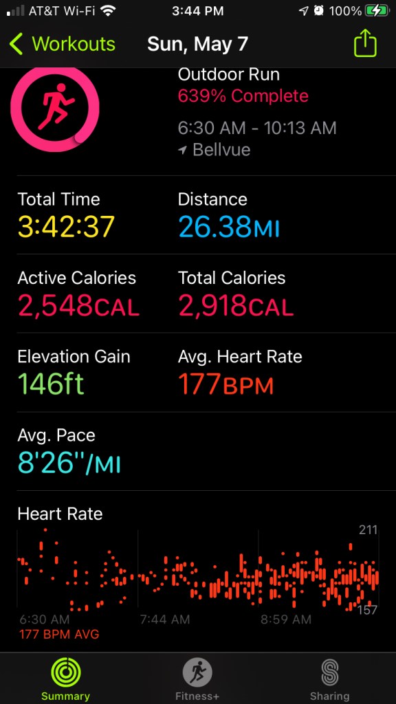 I’ve gained a sense of my pace. To my surprise, I’m pretty comfortable running a 9 minute pace, but only for a half marathon. This marathon would have been easier had I maintained a flat 10 minute pace, which was my overall pace. I want to break 17 hours in Bandara and I can do that with a 16 minute pace – over hills and rocks and hours – but still, seems like it might be in my wheel house by walking enough, well before I even need to.