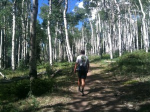 Some of the running segments take you through picturesque old growth aspen groves. Many of these trees tower over 50 feet tall. You feel as if you’re running through a Hallmark card and you think forward to what the scenery will be in September. The experience doesn’t end with the trees either. Much of it comes from the ground. Trails layered with soft, moist dirt and pine needles present you with a dream-like running opportunity. You feel special and you take advantage of it. In fact, while you expected today to be slow due to fatigue, it’s your fastest pace of the weekend with a 19 minute mile average. That includes rest time; moving time averages 15 minutes per mile. You run the 18th mile in 11 minutes. Damn!