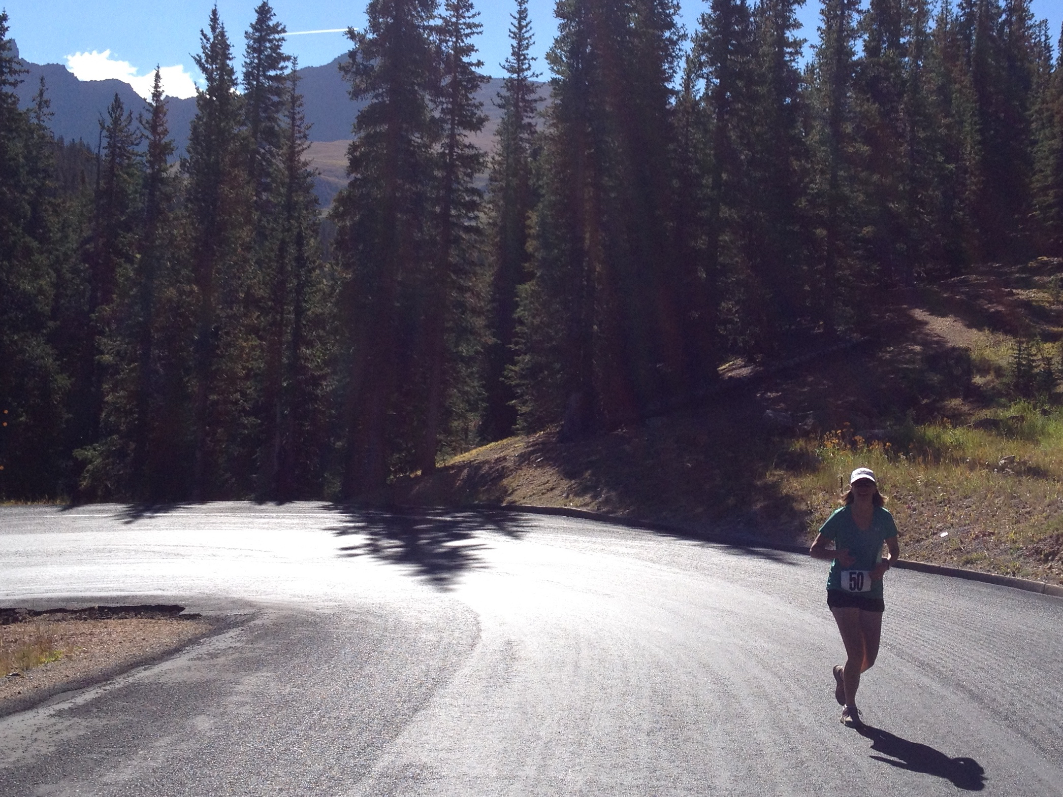 Keith hands off to Kristin, still on Guanella Pass Road. Kristin is a school teacher, also with two kids. She jokes about leaving her husband Brad with the kids while she plays in the mountains. Truth is, she often gets her husband and kids up here. Skiing seems to be the one sport her entire family enjoys the most, but Kristin is a big-time mountain biker. Brad and Kristin even lived in Summit County for a few years early in their marriage. I didn’t know Kristin before this weekend and learn that she’s an incredible athlete. She soars up this mountain road as if it’s flat.