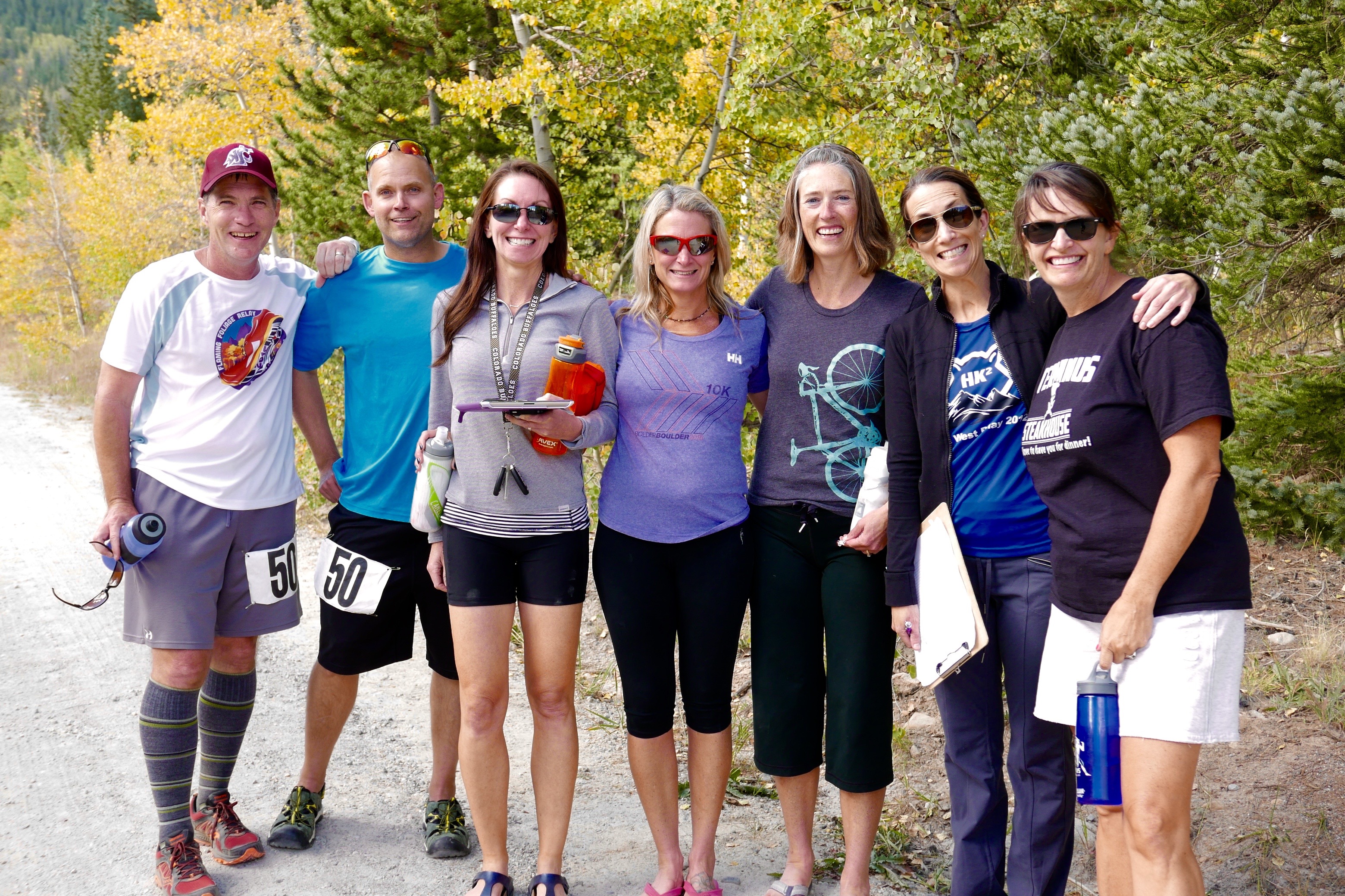 We’re entered in the masters division – meaning over 40 years old. To be competitive at this age, shoot to be half-assed athletic and running period, is a statement. That’s less obvious in Colorado where it seems everyone is so incredibly fit. But then my world might suffer from sample bias. I seem to attend events where everyone looks a lot like me. There’s no Xbox on the trails. The runners on my team though are exceptional. Elite amateurs. Semi-pro, masters-class runners. I’m not intimidated necessarily but feel special to be included, flattered to hang with them. Joining me on Here Kitty Kitty are Keith, Jen, Steve (all neighbors) and Kristin, Jill, Eve, Carolyn and Tom. We’re joined by a second ultra team, Flaming Oven Mitt, with Beth, Ken, Rafe, Brian and Joie.
