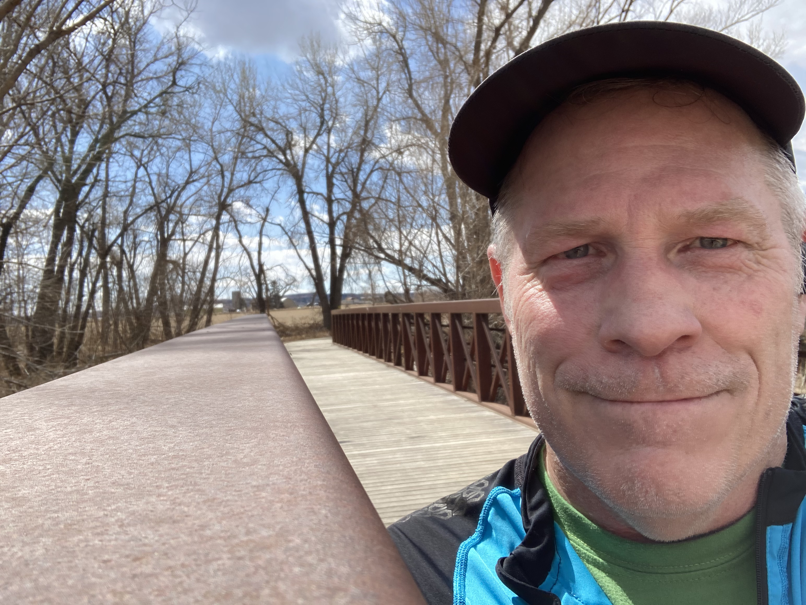 This footbridge is after six miles on an eight miler on the LoBo trail today. My form is still more of a shuffle than a run, but running outside in the Colorado springtime with 50° temps and full sunshine is priceless. I’m as happy as I look. I’m still living the same Saturdays as when I was seventeen running along Town Lake in Austin with my high school buddies. I wonder if any of them remember jumping off the I-35 bridge for a swim. Fortunately that was before cell phones so drivers couldn’t easily call the cops on us.