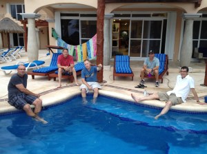 The drive to Puerto Aventuras was easy enough, especially since I wasn’t driving. It’s less than an hour south down Carretera 307. We met with Doug, the proprietor of Brisa Caribe. Doug’s an interesting Canadian ex-pat who designed this casa and had it built after a 27 year career in the seismic exploration for oil and gas. He showed us around and then trusted us to ourselves. Tina – the German chef – cooked us an outrageous Greek dinner and we enjoyed some night time swimming. Per Amy – “the beer flowed like wine.”