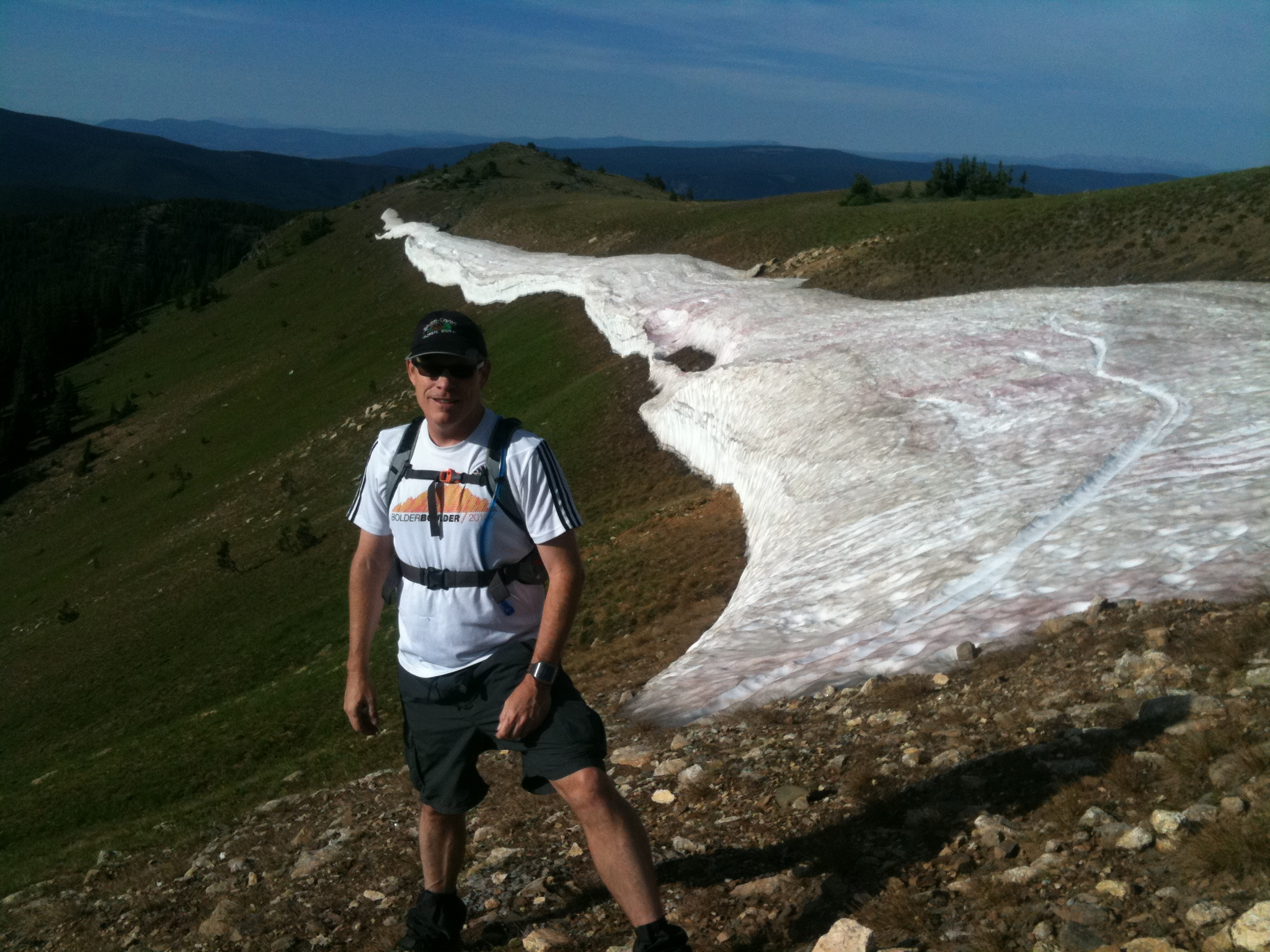 There don’t appear to be any other campers on your hill, although there’s plenty of room. You open a bottle of Shiraz to wind down and recount the amazing day. Everything went right. There was supposed to be thunder storms but they never materialized. The early morning rain and snow served to keep you cool on your run. Your gear performed well and you felt great. Plus you gained quite a bit of experience with your trekking poles and the snow. The conversation slows as the wine combines with your 4am wake up call and you take in your pleasant surroundings.