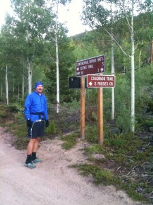 The stars are still amazingly bright as you wake before 4:30am Sunday. You see a couple of shooting stars while drinking the morning coffee. The slow wake up viewing the solar system is nearly the highlight of today’s hike. This trail isn’t exciting enough to take many pictures of. It rides on top of the hill crests, actually the Continental Divide, but trees block most views. You are able to run much of this but at a pace driven hard by Tumbleweed that you find brutal.